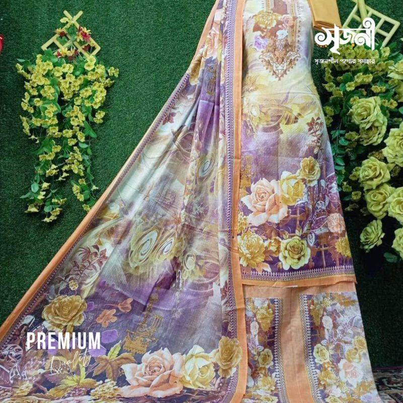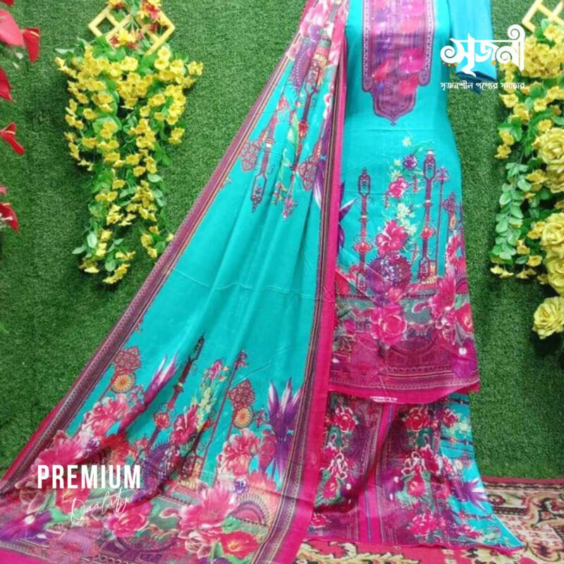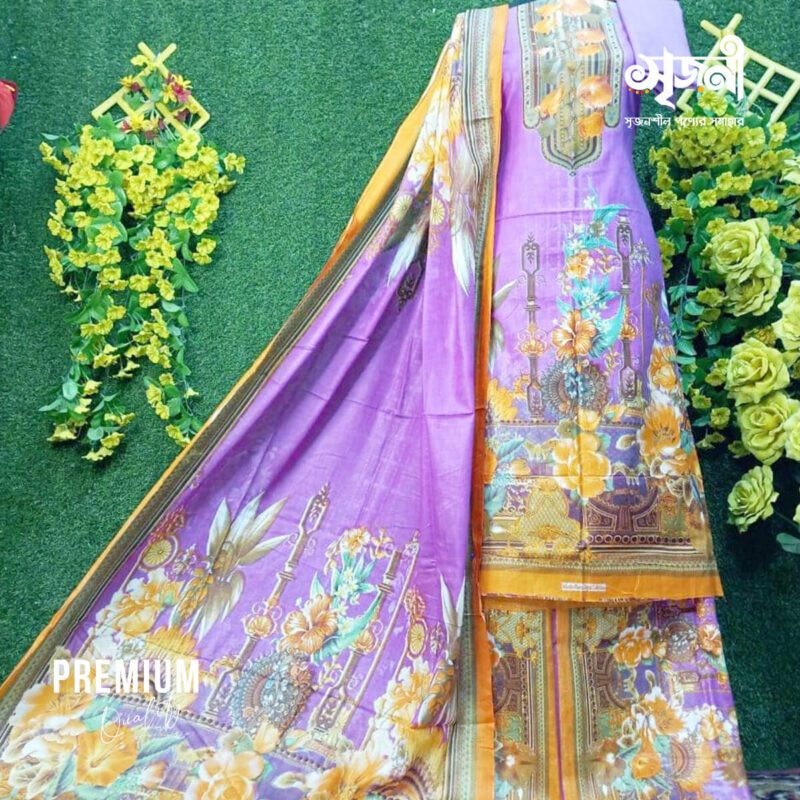 Pure Cotton Elegant Printed Salwar Kameez Suit with Pants & Cotton Dupatta